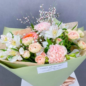 Нежное искушение- букет из роз и гвоздик